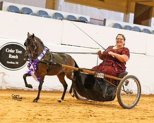 This class is very similar to In Hand Trail, but in this class, the horse is harnessed to a cart. Just like In Hand Trail, the Driver will navigate the horse and cart through a series of predetermined obstacles according to a pattern provided by the show. The equipment required is a harness, cart, whip and appropriate apparel for the exhibitor. Driving obstacles can be varied and generally include cones, bridges, poles, backing, trotting, walking, pivots and precision placement of the cart. This is another very popular class for both Youth and Adults.